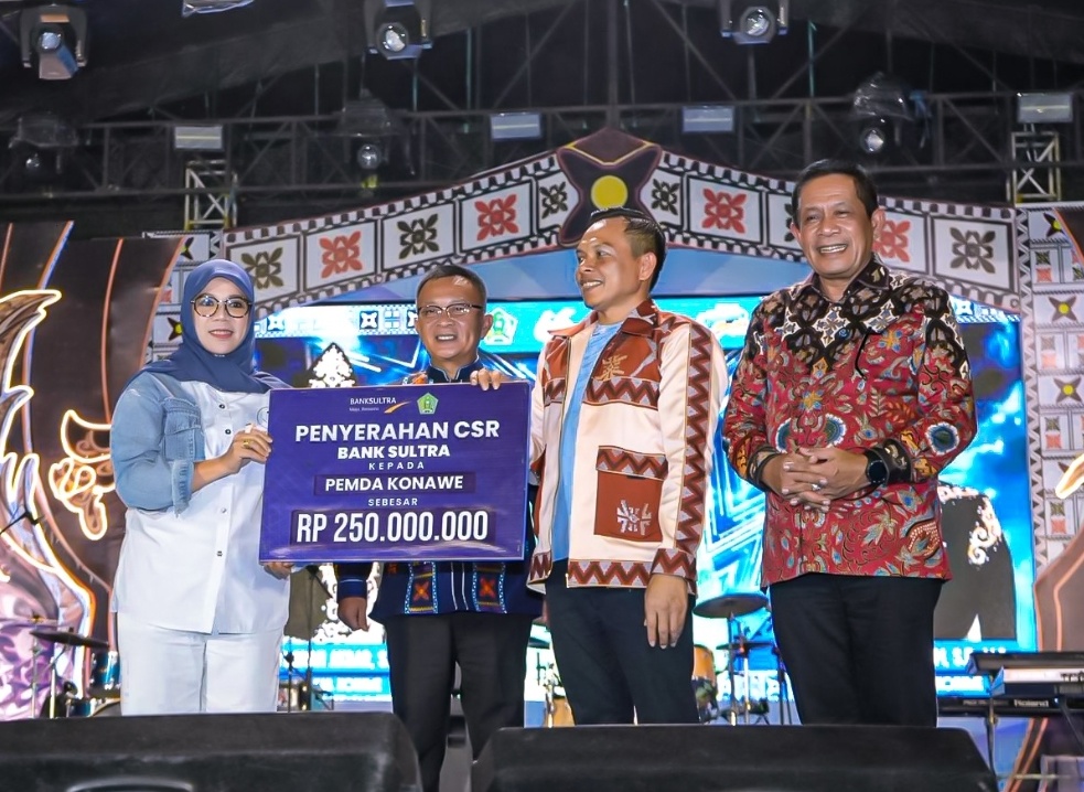 FOKUSNEWS.ID, KONAWE – Bank Sultra menunjukkan komitmen nyatanya dalam mendukung peningkatan kualitas sumber daya manusia di Sulawesi Tenggara. Bertepatan dengan Acara Puncak Penutupan Rangkaian Kegiatan HUT Kabupaten Konawe ke-66, Bank Sultra secara resmi menyerahkan bantuan Corporate Social Responsibility (CSR) senilai Rp250.000.000 (Dua Ratus Lima Puluh Juta Rupiah) yang dialokasikan untuk program beasiswa pendidikan.