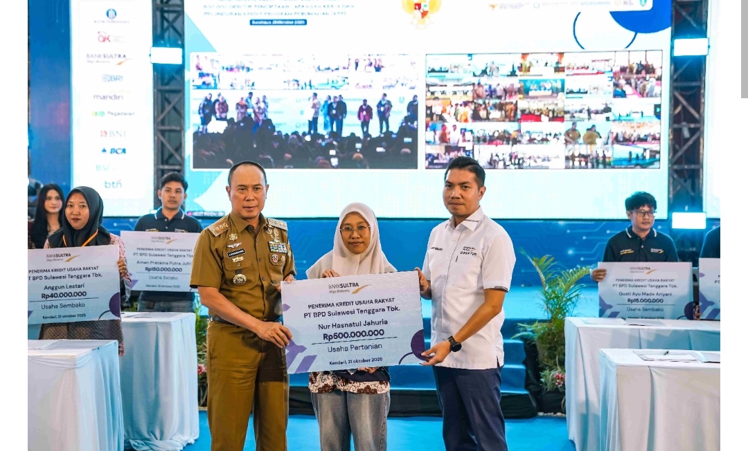 FOKUSNEWS.ID, KENDARI – Bank Sultra berperan aktif sebagai sponsor utama dalam kegiatan Akad Massal Kredit Usaha Rakyat (KUR) bagi 800.000 debitur dan Peluncuran Kredit Program Perumahan (KPP) yang digelar di Aula Bahteramas, Kompleks Kantor Gubernur Sulawesi Tenggara. Acara ini merupakan bagian dari kegiatan nasional Akad Massal KUR 800.000 Debitur yang dilaksanakan serentak di seluruh Indonesia, dengan kegiatan utama yang dipusatkan di Dyandra Convention Center Surabaya.