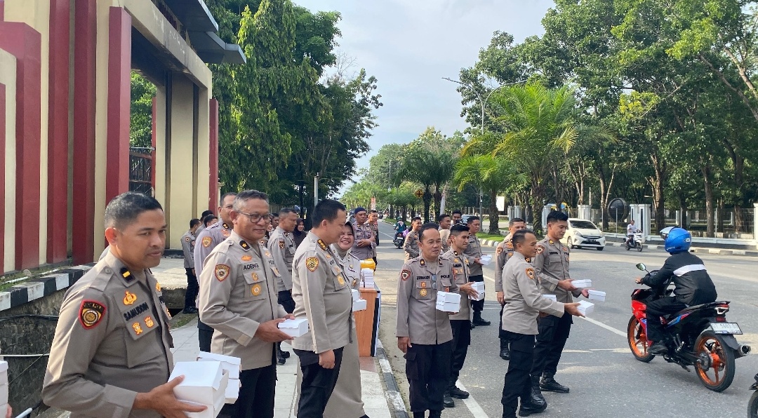 Sebanyak 250 paket takjil dibagikan kepada jamaah Masjid Al Amin Polda Sultra serta masyarakat pengguna jalan raya yang melintas di depan Mako Polda Sultra menjelang waktu berbuka puasa. Pembagian dilakukan secara tertib dan humanis dengan melibatkan personel Biro SDM Polda Sultra.
