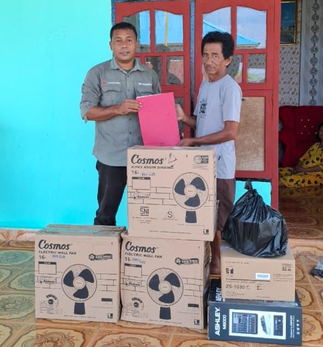 Sejumlah bantuan perlengkapan berupa kipas angin dinding dan material bangunan disalurkan dalam program CSR PT DSSP Power Kendari untuk mendukung renovasi serta peningkatan fasilitas masjid di sekitar wilayah operasional perusahaan selama bulan suci Ramadan.(Foto Ist)