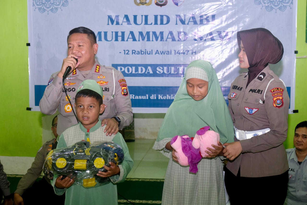 “Melalui momentum Maulid Nabi dan Hari Lalu Lintas Bhayangkara, kami ingin hadir lebih dekat dengan masyarakat serta berbagi kebahagiaan, khususnya kepada para santri di Pondok Pesantren. Semoga kegiatan ini membawa berkah dan semakin mempererat hubungan Polri dengan masyarakat,” ujar Kombes Pol Dr. Argowiyono.