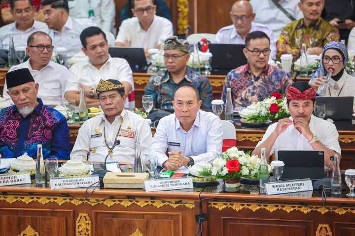 FOKUSNEWS.ID, BALI – Gubernur Sulawesi Tenggara (Sultra), Mayjen TNI (Purn) Andi Sumangerukka menghadiri Rapat Konsolidasi Nasional dan Percepatan Operasionalisasi Koperasi Desa/Kelurahan Merah Putih di Kantor Gubernur Bali, Denpasar, Jumat (8 Agustus 2025). Gubernur Sultra hadir bersama sejumlah gubernur lainnya se-Indonesia beserta sejumlah menteri Kabinet Merah Putih.