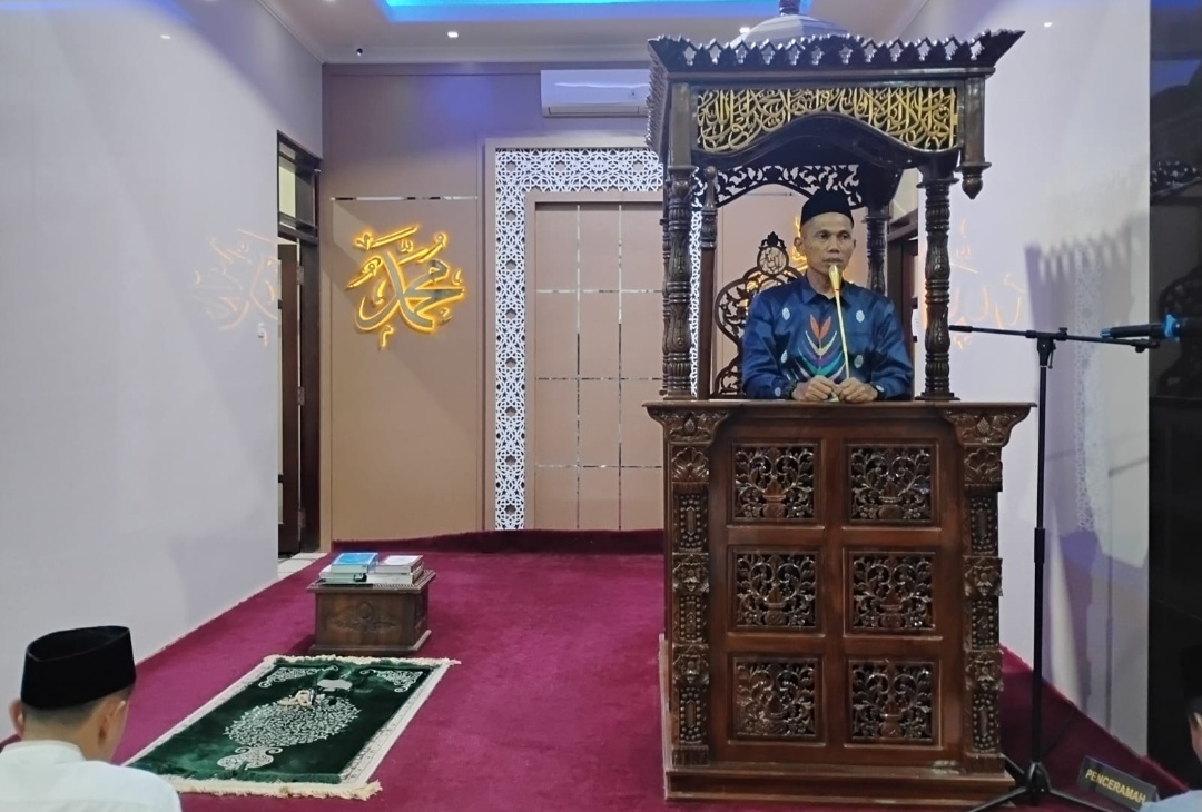FOKUSNEWS.ID, KENDARI – Danyon A Pelopor Satbrimob Polda Sultra Kompol Alwi, S.Ag membawakan tausiah ramadhan di Masjid Al-Amin Polda Sulawesi Tenggara (Sultra) dalam rangkaian ibadah salat tarawih pada Selasa malam (10/3/2026). Ceramah ramadhan tersebut disampaikan di hadapan jamaah yang terdiri dari pejabat utama Polda Sultra, personel Polda Sultra dan masyarakat.