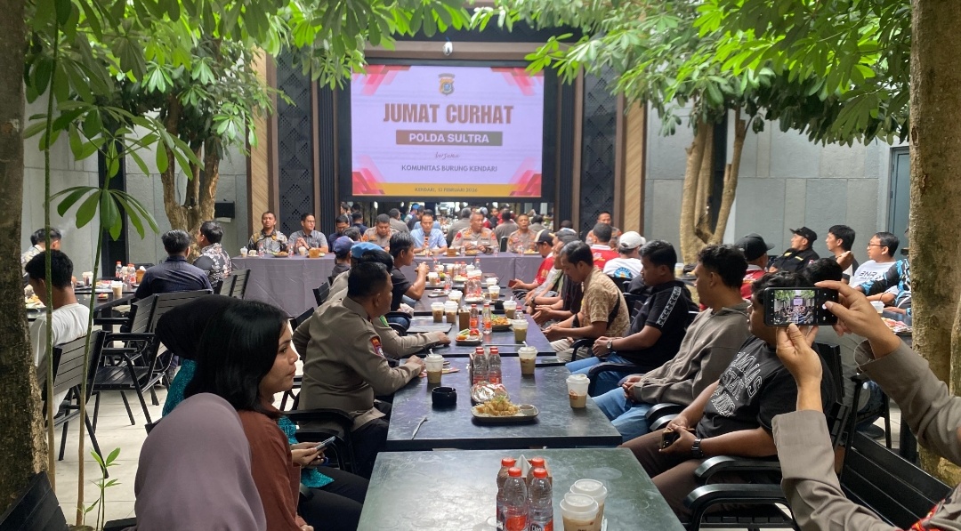 FOKUSNEWS.ID, KENDARI – Jajaran Polda Sulawesi Tenggara kembali menggelar program “Jumat Curhat” sebagai wadah dialog langsung dengan masyarakat. Kegiatan kali ini dilaksanakan bersama Komunitas Burung Kendari di Maimo Cafe & Bistro pada Jumat (13/2/2026) pukul 08.00 Wita hingga selesai.