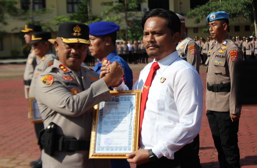 FOKUSNEWS.ID, KENDARI – Kepala Kepolisian Daerah Sulawesi Tenggara (Kapolda Sultra), Irjen Pol Didik Agung Widjanarko, S.I.K., M.H., memberikan penghargaan (reward) kepada sejumlah personel yang menunjukkan dedikasi dan prestasi luar biasa. Penyerahan penghargaan ini dilakukan secara resmi dalam Upacara Kesadaran Nasional yang berlangsung di Lapangan Apel Presisi Mapolda Sultra, Jumat (17/4/2026).