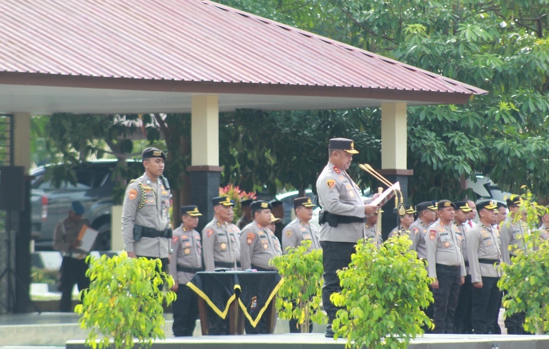 Upacara tersebut dipimpin langsung oleh Kapolda Sultra Irjen Pol Didik Agung Widjanarko, S.I.K., M.H., serta diikuti Wakapolda Sultra Brigjen Pol Dr. Gidion Arief Setyawan, S.H., S.I.K., M.Hum., Irwasda Kombes Pol Hartoyo, S.I.K., M.H., Karo SDM Kombes Pol Dr. Arief Fitrianto, S.I.K., S.H., M.M, para pejabat utama Polda Sultra, dan seluruh personel.
