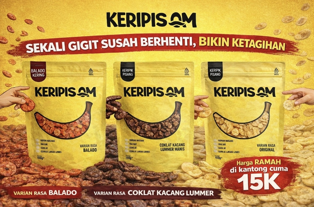 Mengusung slogan “Sekali Gigit Susah Berhenti”, Keripis OM hadir dengan tekstur crispy ringan dan cita rasa yang konsisten di setiap gigitan. Dibuat dari pisang pilihan dan diolah secara higienis, Keripis OM menawarkan kualitas premium dengan harga yang tetap terjangkau.