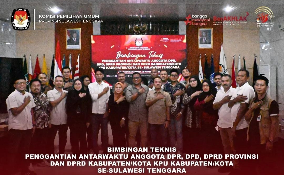 FOKUSNEWS.ID, KENDADRI – Komisi Pemilihan Umum (KPU) Provinsi Sulawesi Tenggara (Sultra) hari ini melaksanakan Bimbingan Teknis (Bimtek) mengenai Penggantian Antar Waktu (PAW) bagi anggota Dewan Perwakilan Rakyat (DPR), Dewan Perwakilan Daerah (DPD), Dewan Perwakilan Rakyat Daerah (DPRD) Provinsi, dan DPRD Kabupaten/Kota.