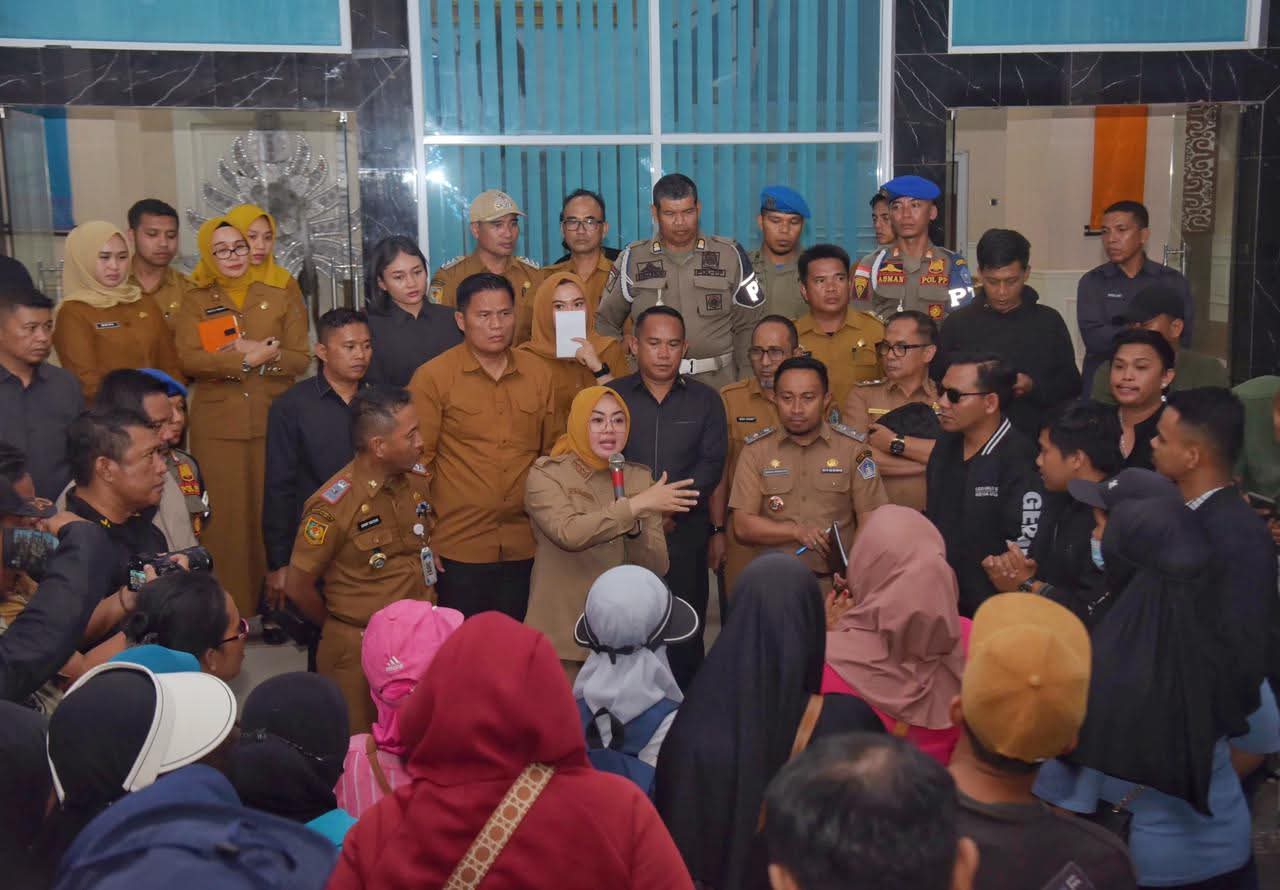 Wali Kota Kendari, dr. Hj. Siska Karina Imran, SKM Menemui Warga Saat Aksi di Kantor Balaikota (Foto Ist)