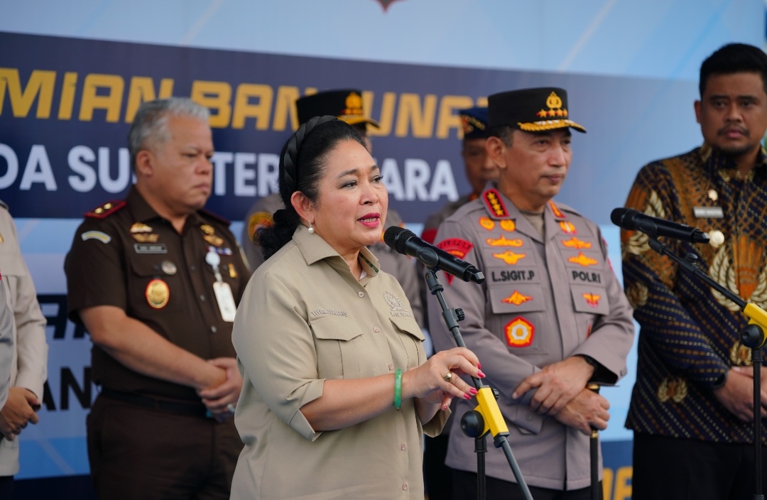 FOKUSNEWS.ID, SUMUT – Ketua Komisi IV DPR, Siti Hediati Hariyadi atau Titek Soeharto menghadiri pelepasan bantuan kemanusiaan Polri sebanyak 22 kontainer untuk didistribusikan kepada korban bencana alam di Aceh, Sumatra Utara, dan Sumatra Barat.
