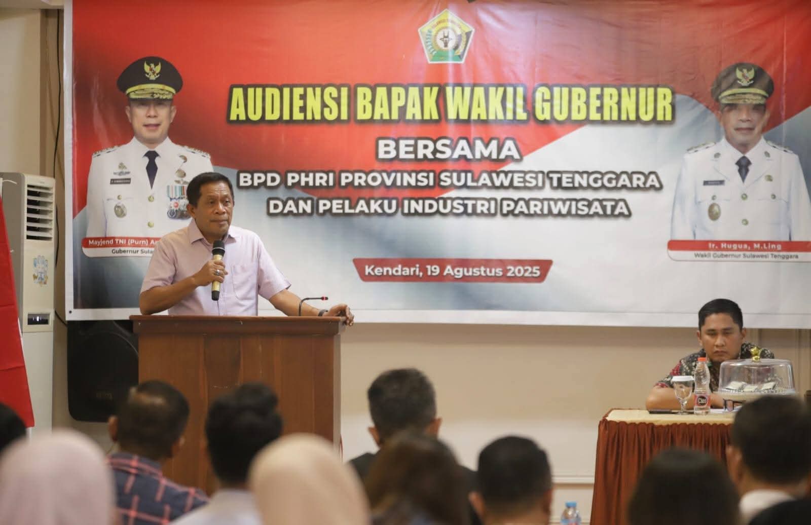 Dalam keterangannya kepada awak media, Wakil Gubernur Sultra Ir. Hugua, menyampaikan bahwa audiensi tersebut dihadiri oleh komunitas pariwisata yang terdiri dari BPD PHRI, HPI, ASITA, pelaku travel, para chef dan Seluruh elemen pariwisata ini berkumpul untuk memastikan kesiapan menyukseskan dua event nasional, yakni Rakorda Produk Hukum Daerah dan STQH Nasional XXVIII. Dari aspek perhotelan, sekitar 3.400 kamar mulai dari kelas 1, hotel berbintang hingga homestay berkelas telah disiapkan. Selain itu, pelaku usaha juga sepakat tidak menaikkan tarif secara berlebihan, mengangkat kuliner tradisional sebagai identitas daerah, serta menyiapkan paket tur ke berbagai kabupaten/kota lengkap dengan transportasi, keamanan, dan standar pelayanan yang memadai.